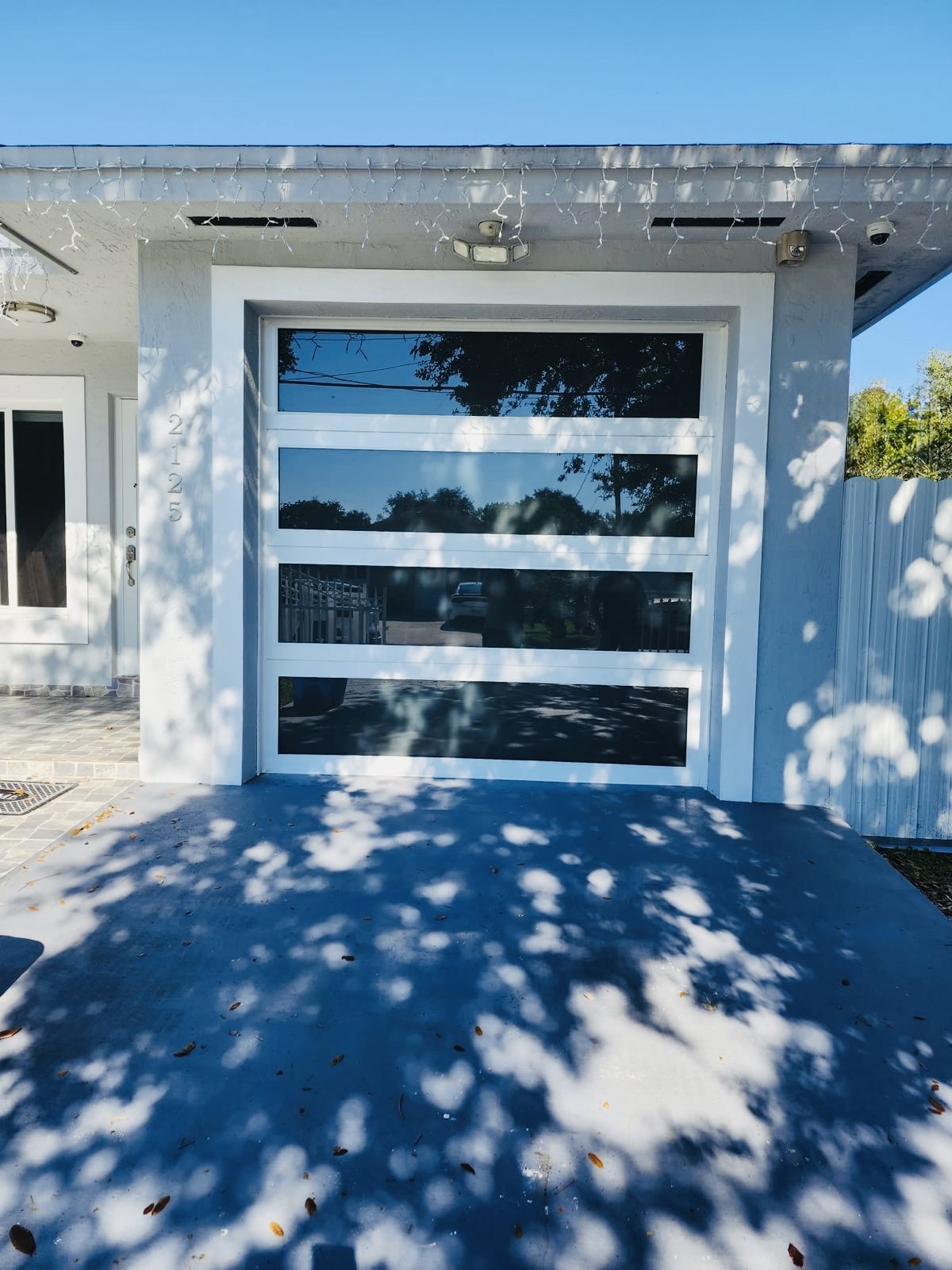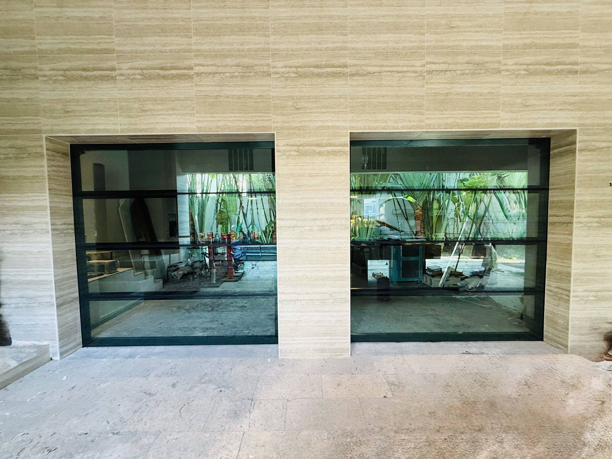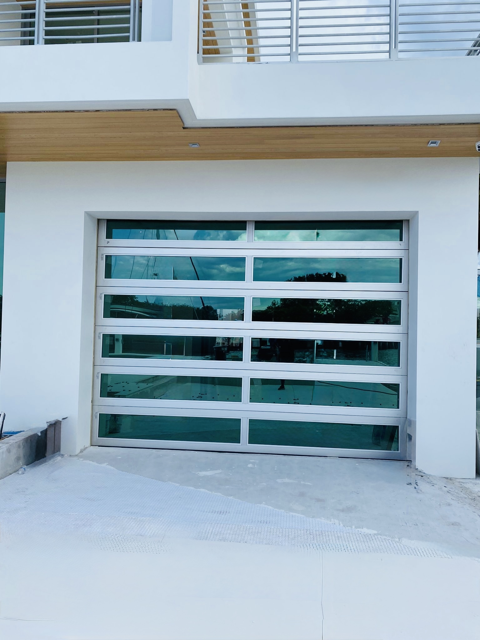 All-glass impact-rated garage doors give homeowners the dramatic look of floor-to-ceiling glass with the security and durability required for South Florida living. Engineered to withstand hurricane-force winds and flying debris, these doors combine modern aesthetics with certified protection, letting you enjoy natural light, panoramic views, and a truly elevated curb appeal — without compromising safety.