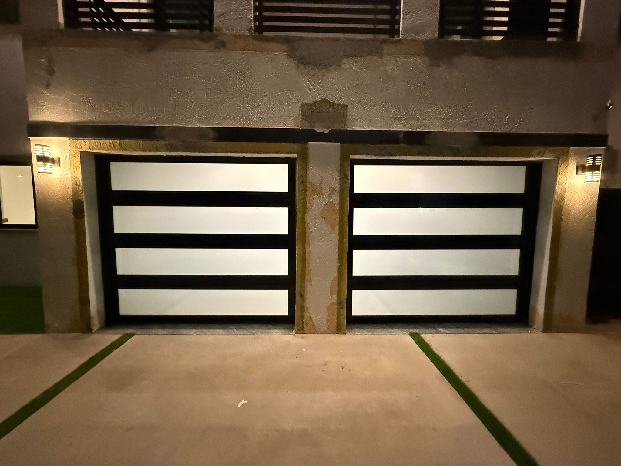 - Stunning visual impact: Create a sleek, contemporary façade that enhances both modern and transitional homes. Glass doors open up visual space and make driveways, patios, and garages feel brighter and more connected to the outdoors.
