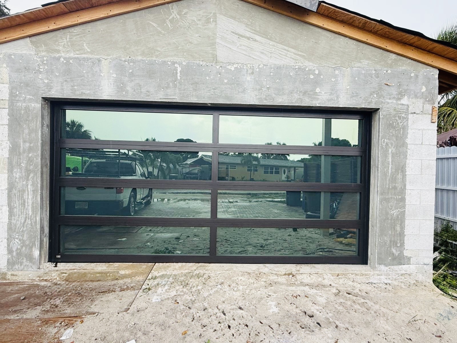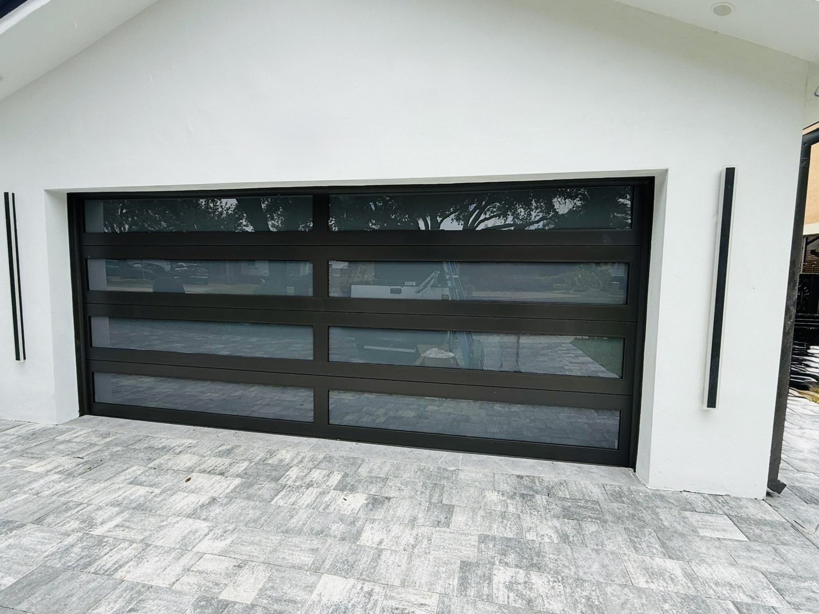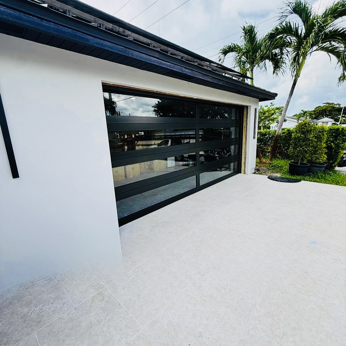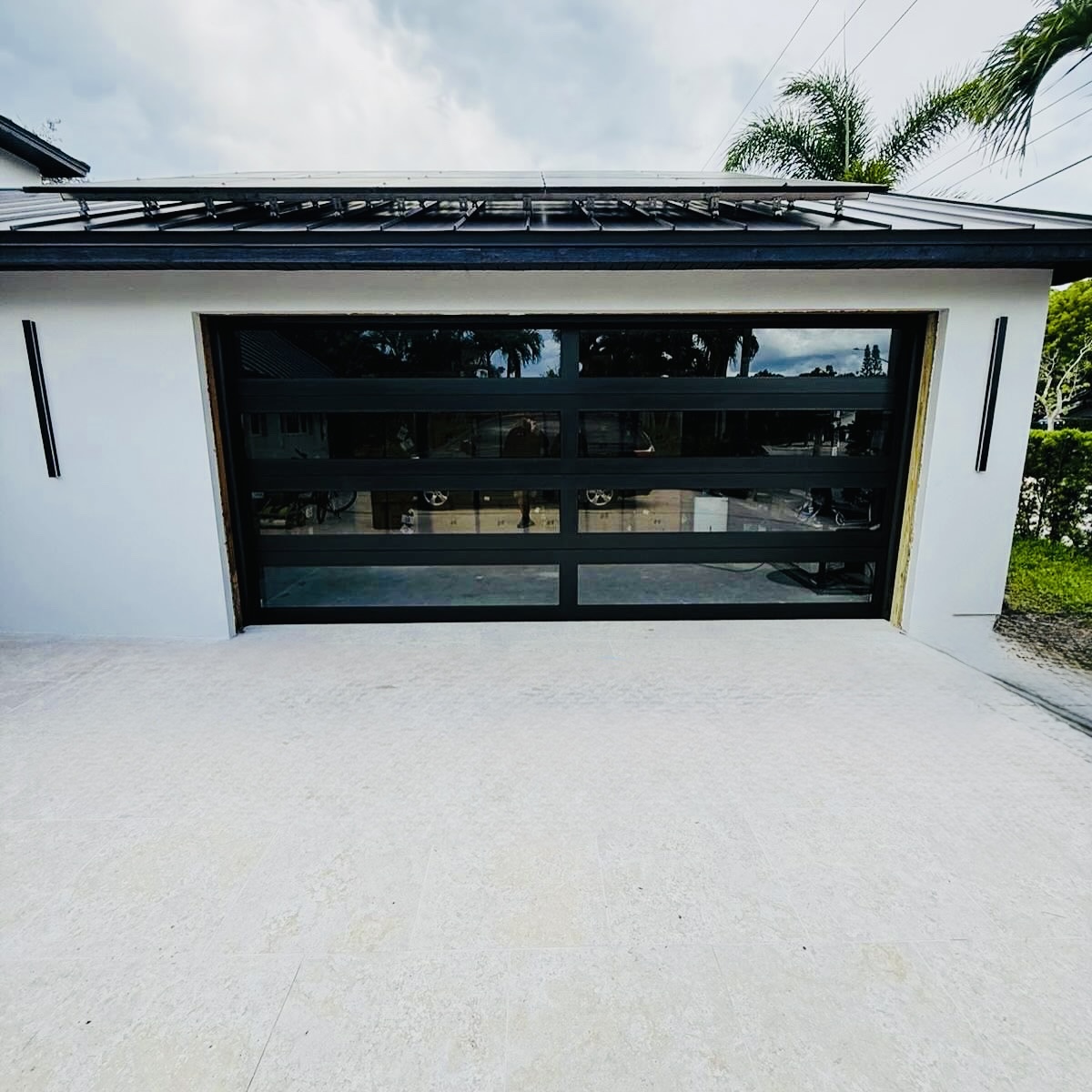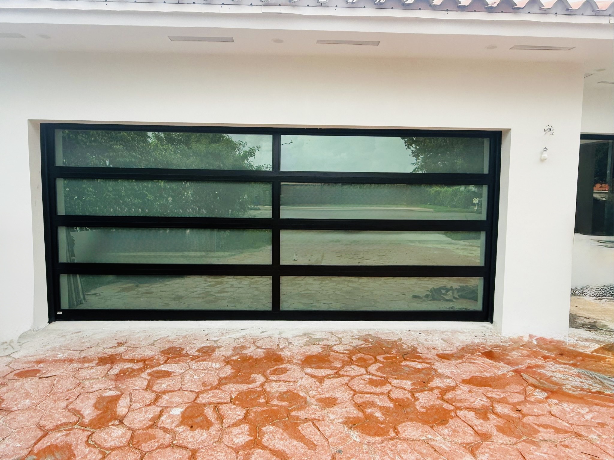 All-glass impact-rated garage doors give homeowners the dramatic look of floor-to-ceiling glass with the security and durability required for South Florida living. Engineered to withstand hurricane-force winds and flying debris, these doors combine modern aesthetics with certified protection, letting you enjoy natural light, panoramic views, and a truly elevated curb appeal — without compromising safety.Why Choose an All-Glass Impact-Rated Garage Door?