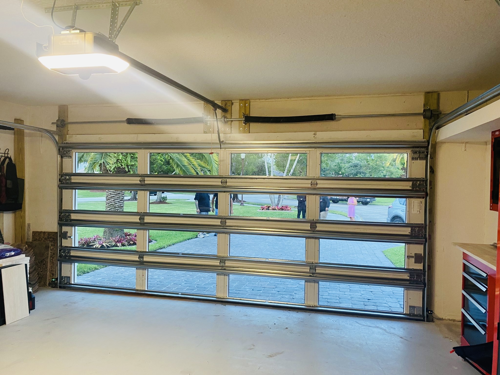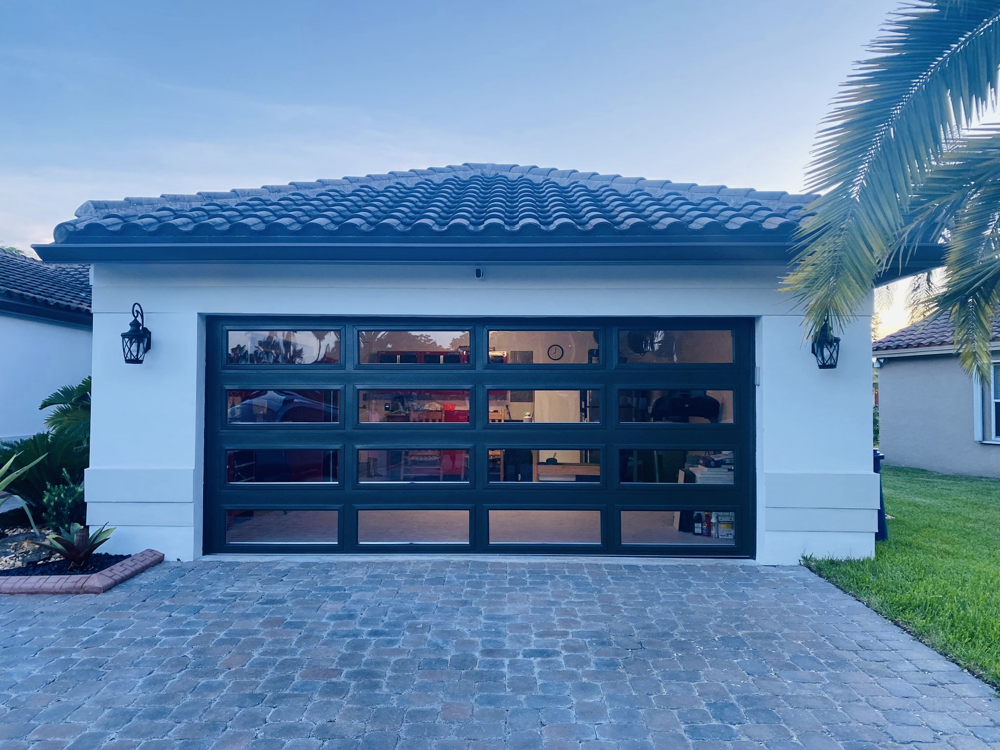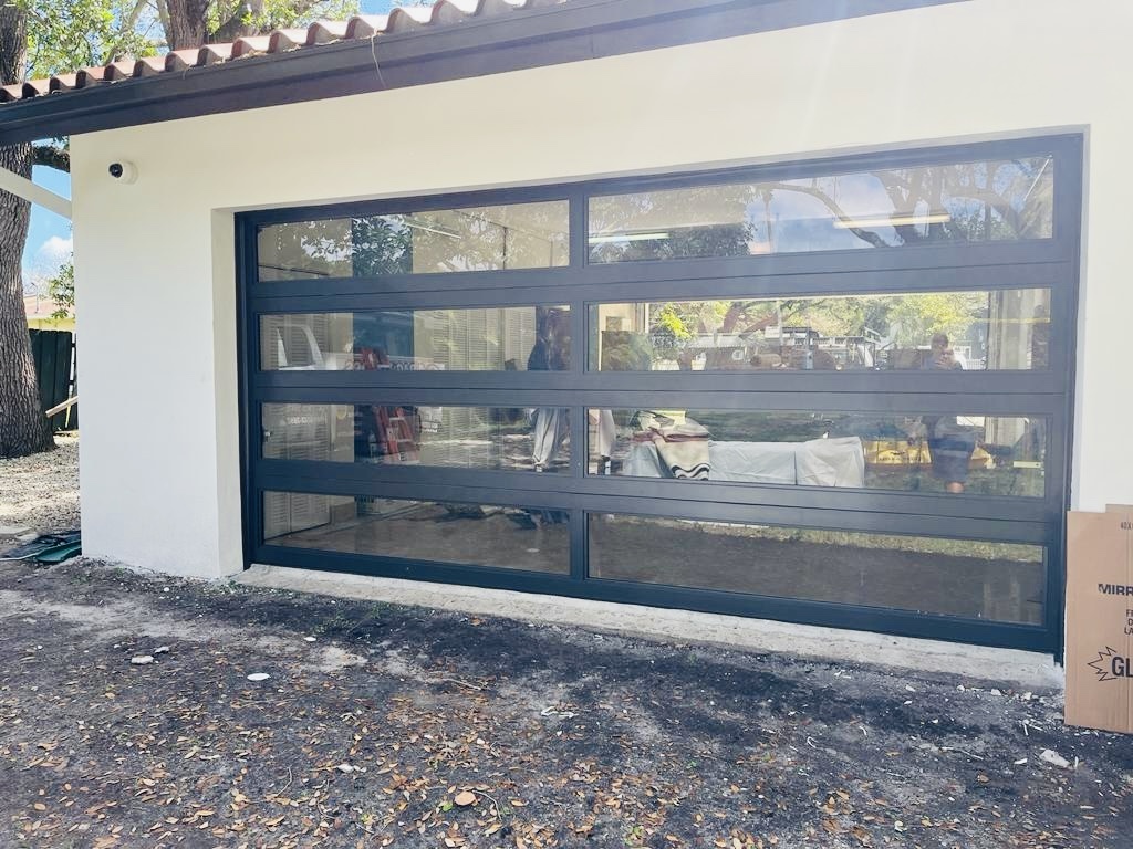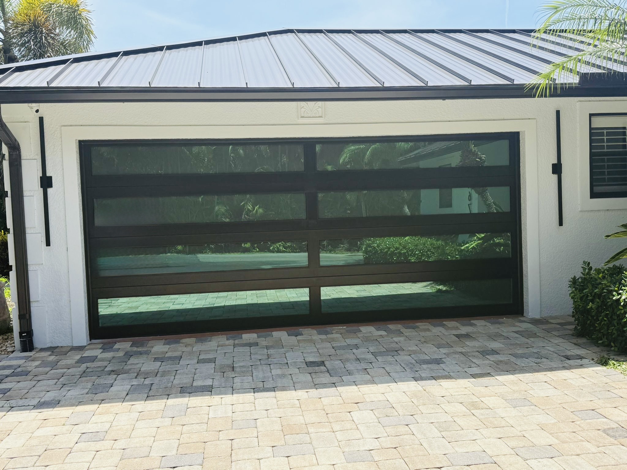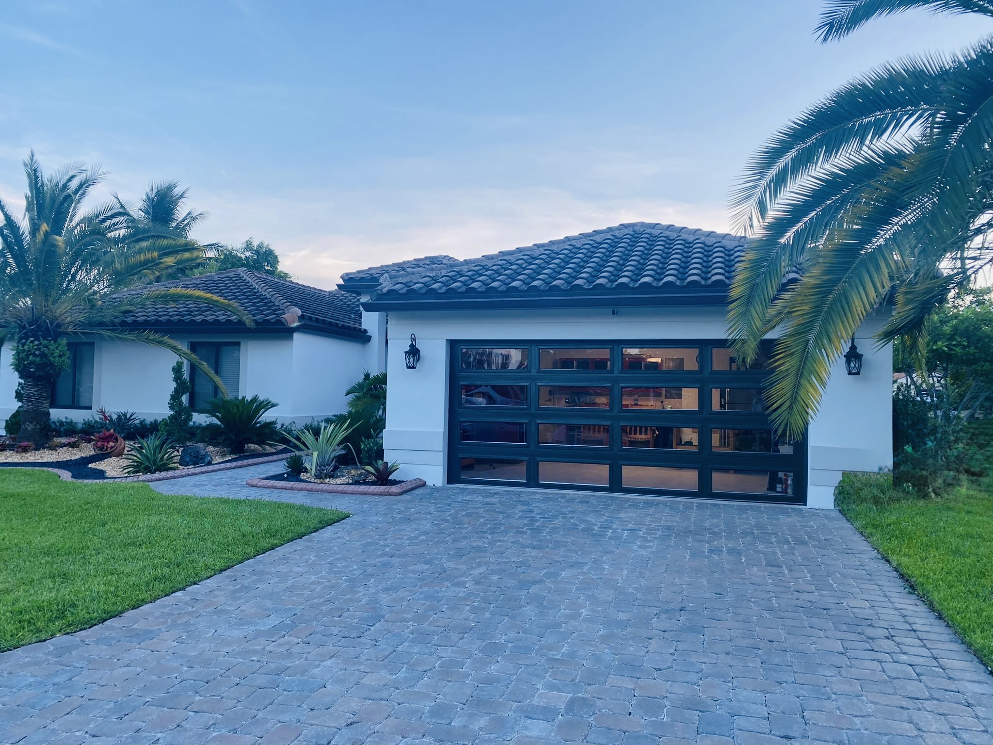All-glass impact-rated garage doors give homeowners the dramatic look of floor-to-ceiling glass with the security and durability required for South Florida living. Engineered to withstand hurricane-force winds and flying debris, these doors combine modern aesthetics with certified protection, letting you enjoy natural light, panoramic views, and a truly elevated curb appeal — without compromising safety.Why Choose an All-Glass Impact-Rated Garage Door?